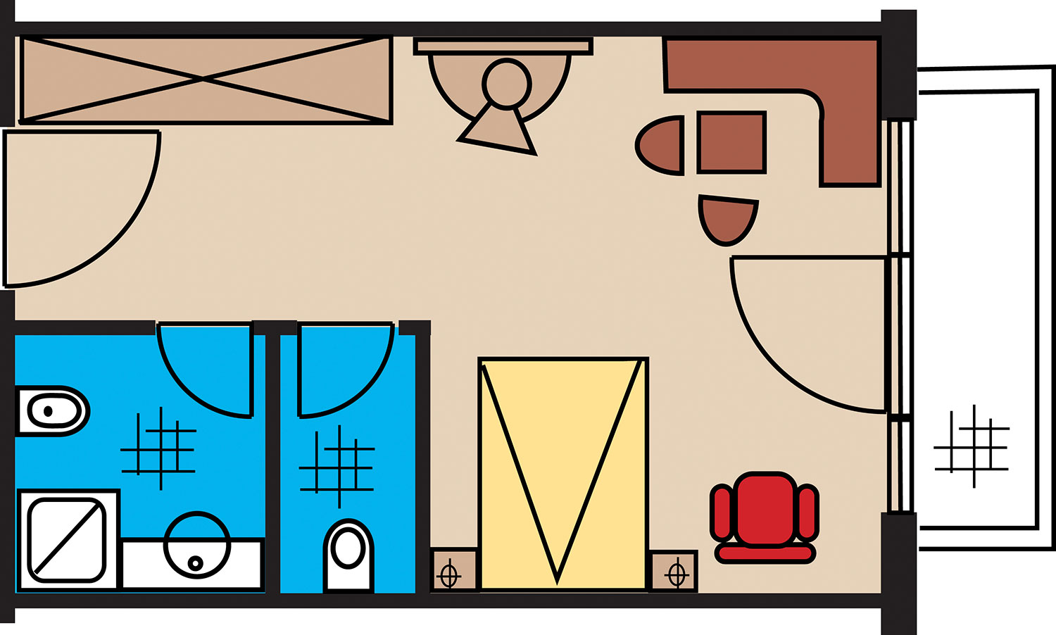 Das Zimmer beinhaltet eine gemütliche Sitzecke, Balkon und Panoramablick auf das Bergmassiv des Rosengartens, Dusche bzw. Badewanne, WC, Bidet, Fön, Telefon, Safe, Flat-TV, Sat-TV, Radio, Minibar, Parkettboden, Wi-Fi.